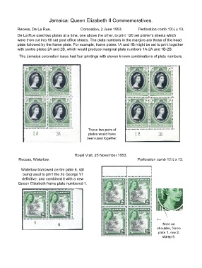 The Jamaica coronation issue had four printings with eleven known combinations of plate numbers.