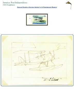Jamaica: Post Independence 1984 Seaplanes Issued Stamp & Signed Artist’s (A Theobald) Design