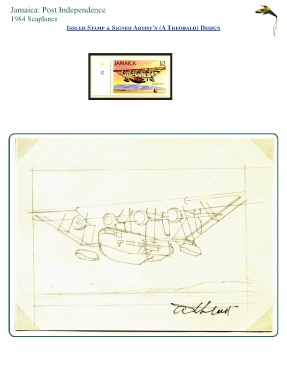 Jamaica: Post Independence 1984 Seaplanes Issued Stamp & Signed Artist’s (A Theobald) Design