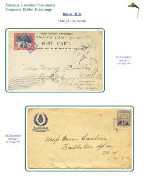 Jamaica: Location Postmarks Temporary Rubber Datestamps Boxed TRDs Titchfield – Port Antonio At Titchfield TRD Die 2 of 27 Apr 1903 At Titchfield TRD Die 3 of 18 Jan 1904