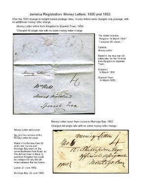 Jamaica Registration: Money Letters, 1850 and 1852.