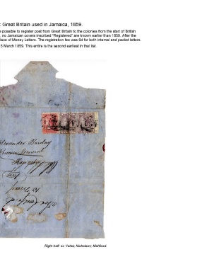 " no Jamaican covers inscribed "Registered" are known earlier than 1859. After the