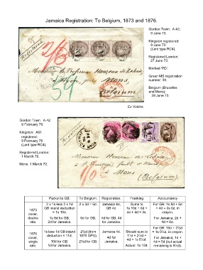 Jamaica Registration: To Belgium, 1873 and 1876.