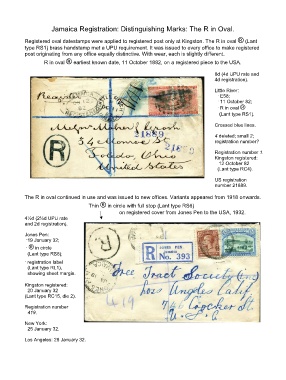 Registered oval datestamps were applied to registered post only at Kingston. The R in oval ® (Lant