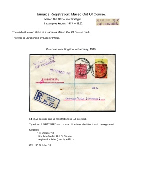 The earliest known strike of a Jamaica Mailed Out Of Course mark,
