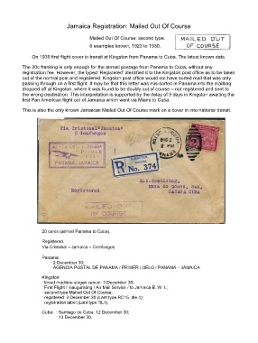On 1930 first flight cover in transit at Kingston from Panama to Cuba. The latest known date.
