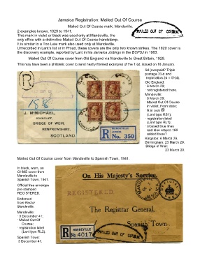 Mailed Out Of Course cover from Old England via Mandeville to Great Britain, 1929.