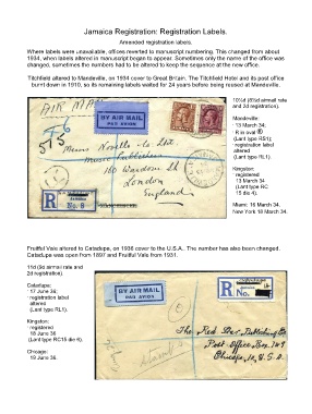 Titchfield altered to Mandeville, on 1934 cover to Great Britain. The Titchfield Hotel and its post office