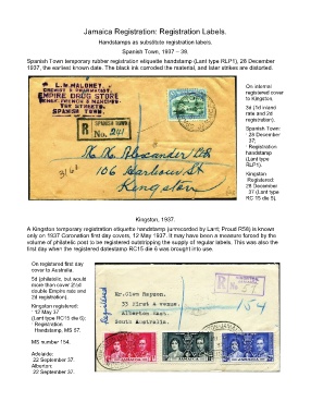 Spanish Town temporary rubber registration etiquette handstamp (Lant type RLP1), 28 December