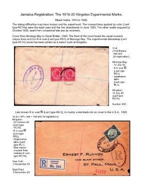 Jamaica Registration: The 1919-20 Kingston Experimental Marks.