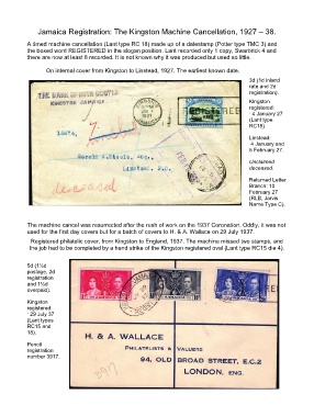 Jamaica Registration: The Kingston Machine Cancellation, 1927 – 38.
