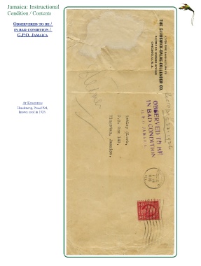 Jamaica: Instructional Condition / Contents Observered to be / in bad condition / G.P.O. Jamaica At Kingston Handstamp, Proud I94, known used in 1926.