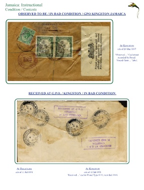 OBSERVED TO BE / IN BAD CONDITION / GPO KINGSTON JAMAICA