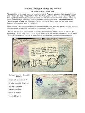 The mail was salvaged, wet, from the Ailsa wreck and forwarded. When it arrived in Jamaica, the