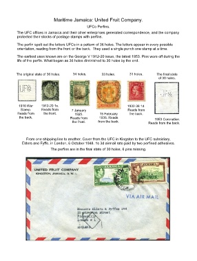 The perfin spelt out the letters UFCo in a pattern of 36 holes. The letters appear in every possible