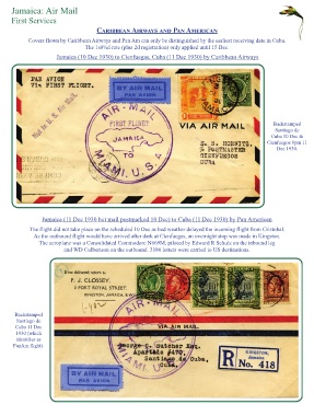 Jamaica (11 Dec 1930 but mail postmarked 10 Dec) to Cuba (11 Dec 1930) by Pan American