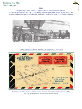The Clipper took off from Miami via Cuba to Jamaica, 222 letters arrived in Jamaica (mostly from the USA).