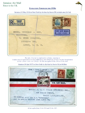 Jamaica (10 Apr 1937) to New York by Air then by Sea to UK at 8d Rate