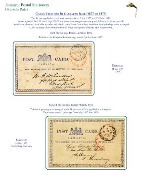 Jamaica joined the UPU on 1 April 1877 and there was a requirement to provide Postal Stationery cards.