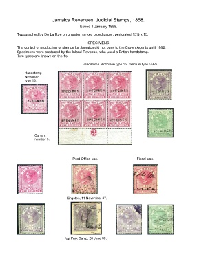 Jamaica Revenues: Judicial Stamps, 1858.