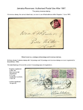 Jamaica Revenues: Authorised Postal Use After 1887.