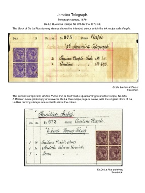 A Robson Lowe photocopy of a reverse De La Rue recipe page is below, with the original block of De