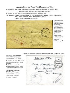 Also struck with: Answer to be addressed to / P. of W. Brigade Office, / Jamaica. (Farrimond type POW1).