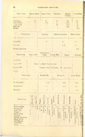 Fares from. Santa Cruz. Quarters. Black River. Sav.-la-Mar.
