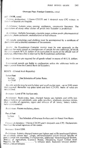 Air /See Schedule of Overseas Surface and Air Parcel Post Rates.