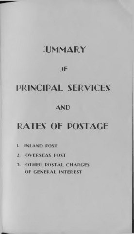 SUMMARY OF PRINCIPAL SERVICES AND RATES OF POSTAGE I. INLAND POST 1. O VERSEAS POST 3. O THER POSTAL CHARGES OF GEN ERAL INTEREST