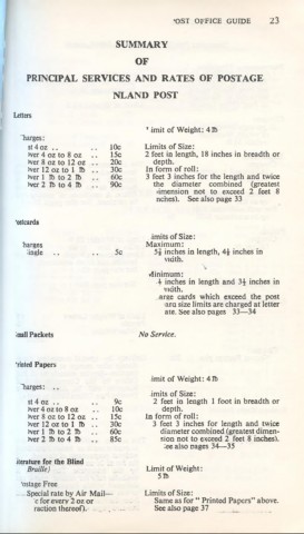 PRINCIPAL SERVICES AND RATES OF POSTAGE