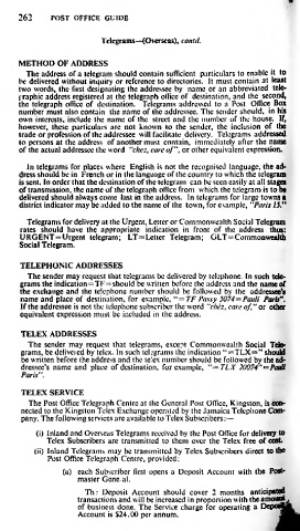 the telegraph office of destination. Telegrams addressed to a Post Office Box