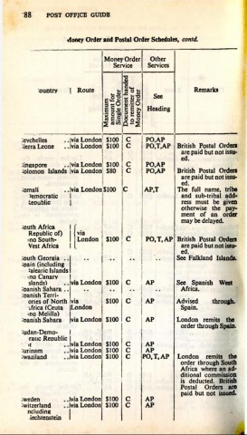 Money Order and Postal Order Schedules, contd.