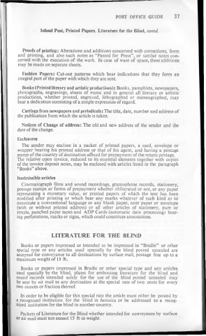 Inland Post, Printed Papers, Literature for the Blind, contd.