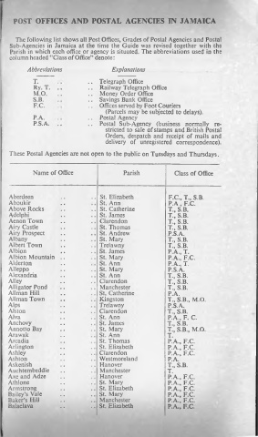 POST OFFICES AND POSTAL AGENCIES IN JAMAICA